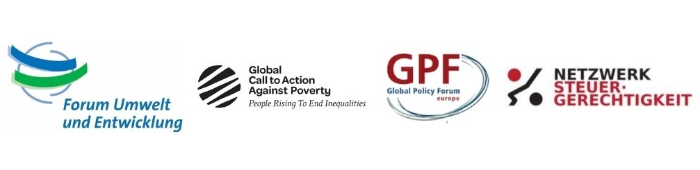 Die Veranstaltung wird organisiert von agl, Forum Umwelt und Entwicklung, Global Call to Action Against Poverty, Global Policy Forum Europe und dem Deutschem Netzwerk Steuergerechtigkeit.
